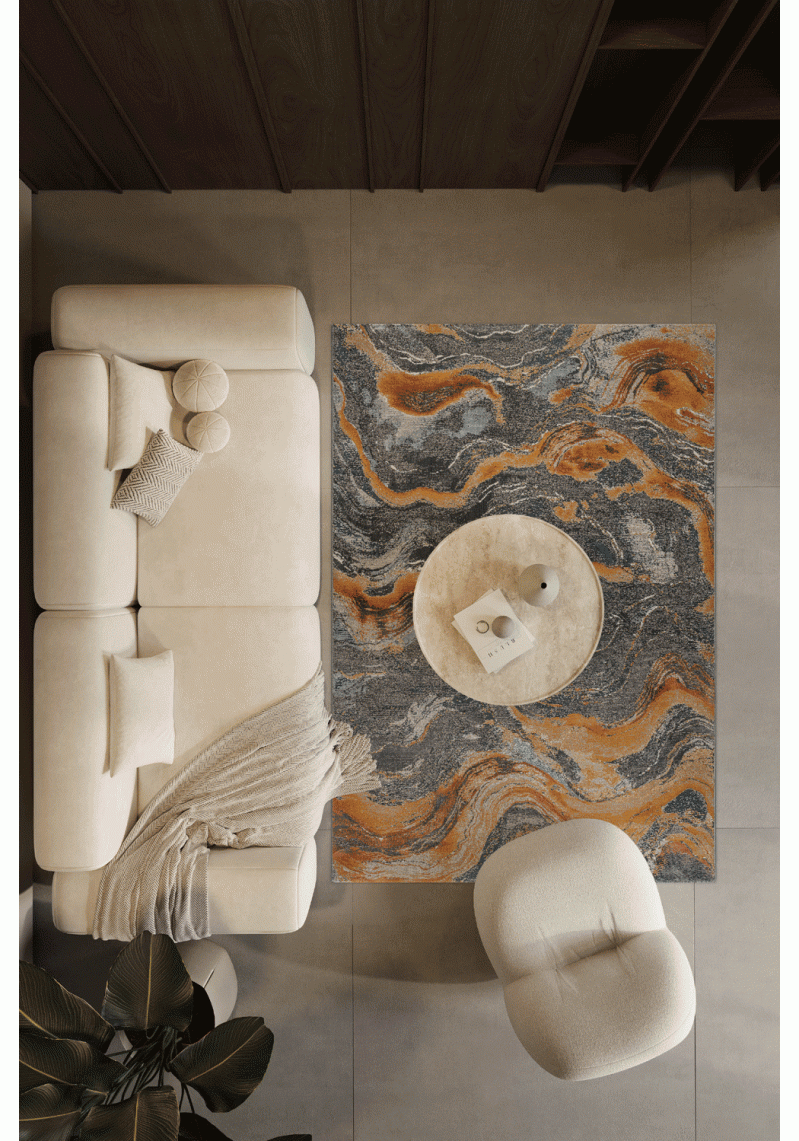 Densely woven relief structured rug with lustre in organic and vintage designs.